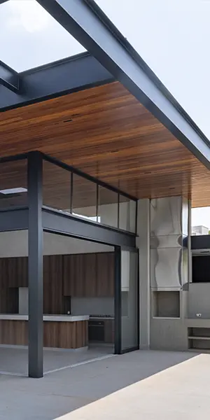 Os telhados embutidos oferecem um design moderno e clean, escondendo as telhas e estruturas de cobertura. São ideais para projetos que valorizam estética minimalista, sem abrir mão de eficiência na proteção contra intempéries.